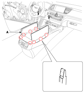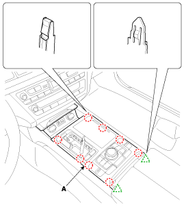 Используя отвертку или съемник, полностью снимите верхнюю часть передней консоли (A).