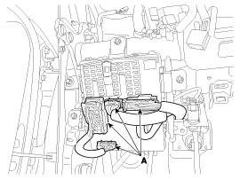 Отсоедините разъем (А) модуля управления подушками безопасности (SRSCM).