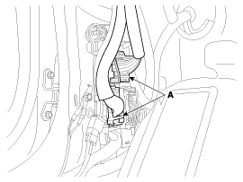 Отсоедините разъем (А) и крепления монтажной проводки в передней стойке.