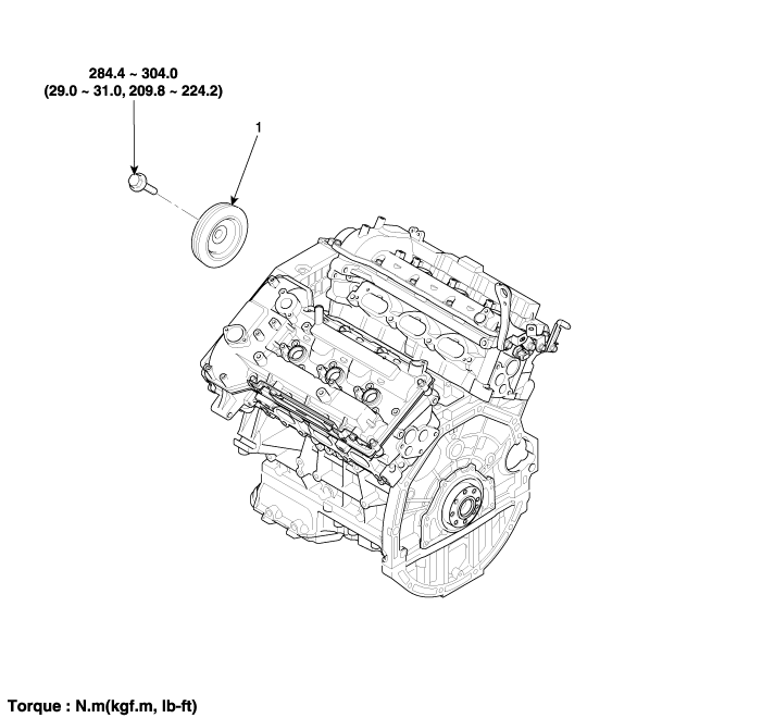 Hyundai Genesis (DH) 2013-2016 Руководство по ремонту / Механическая система двигателя / Система синхронизации / Компоненты демпферного шкива коленчатого вала и их расположение