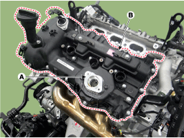 Снимите разъем правого датчика CMP выхлопных газов (A).