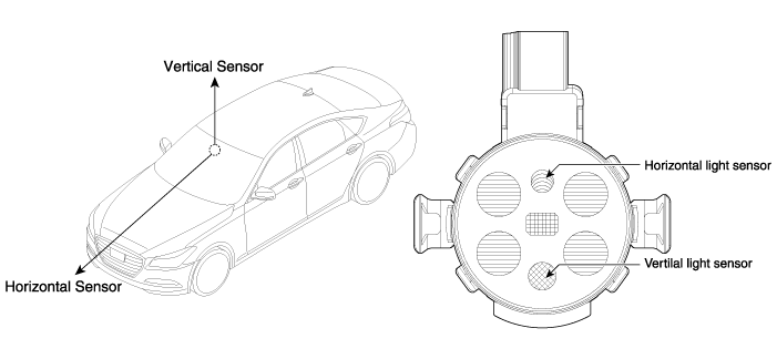 Датчик внешней освещенности: двунаправленный (горизонтальный, по вертикали) применяется измерительный датчик и регулируется яркость HUD по горизонтальным измерениям.