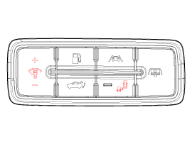 Отображаются преднадежный ремень безопасности (PSB), высокая температура, низкий уровень топлива, давление масла, заряд батареи, задние боковые сигнальные лампы.