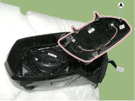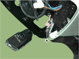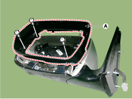 Снимите держатель зеркала (А) с наружного зеркала в сборе.