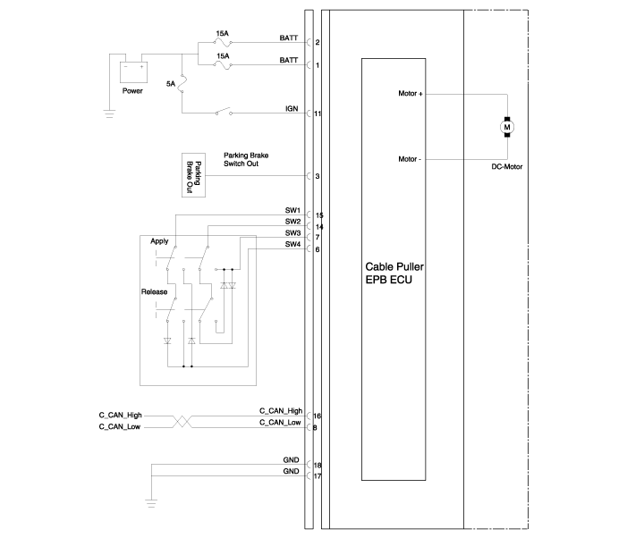 Hyundai Genesis (DH) 2013-2016 Руководство по ремонту / Тормозная система / Стояночная тормозная система / Принципиальные схемы электрического стояночного тормоза (EPB)