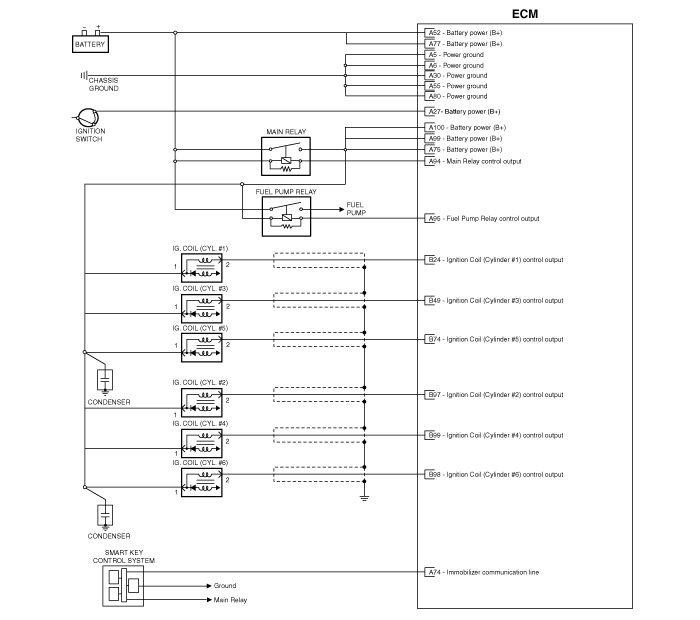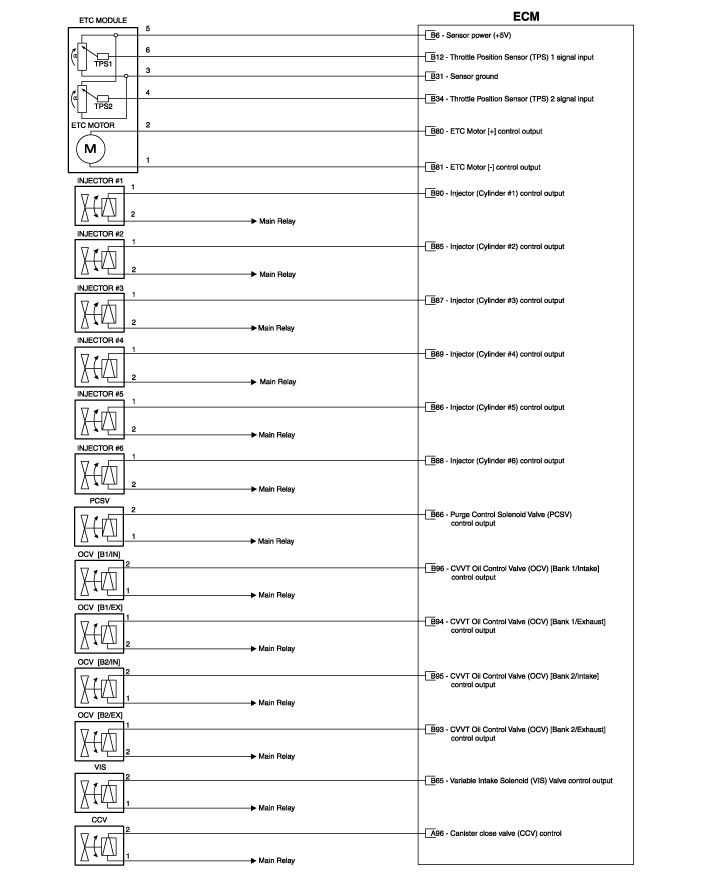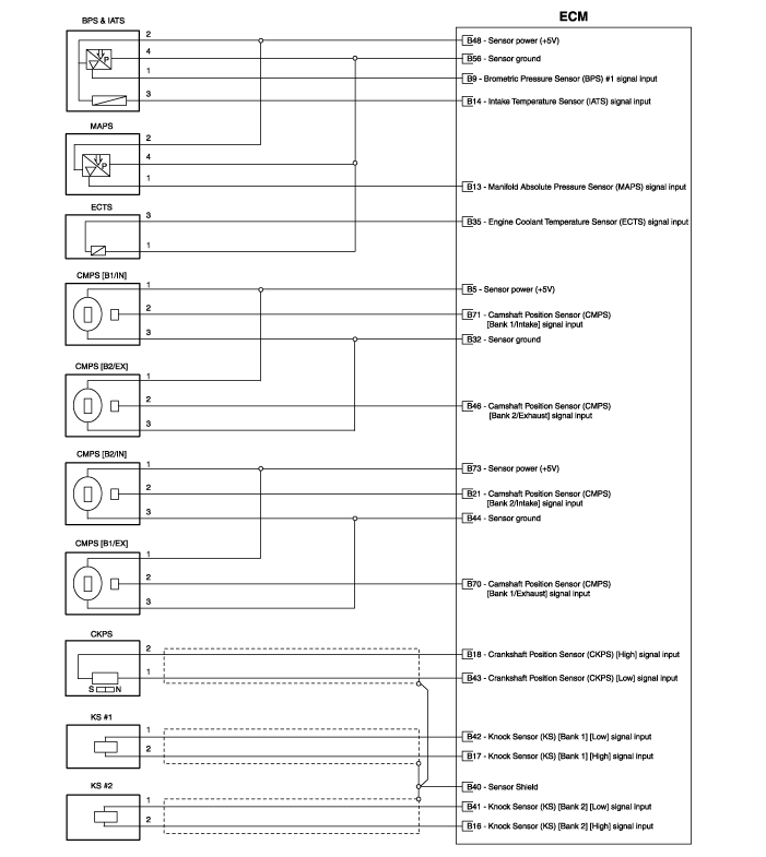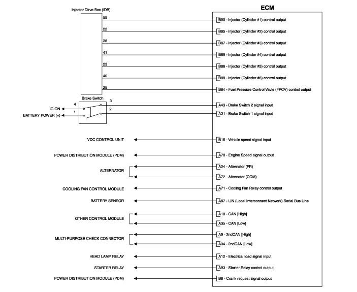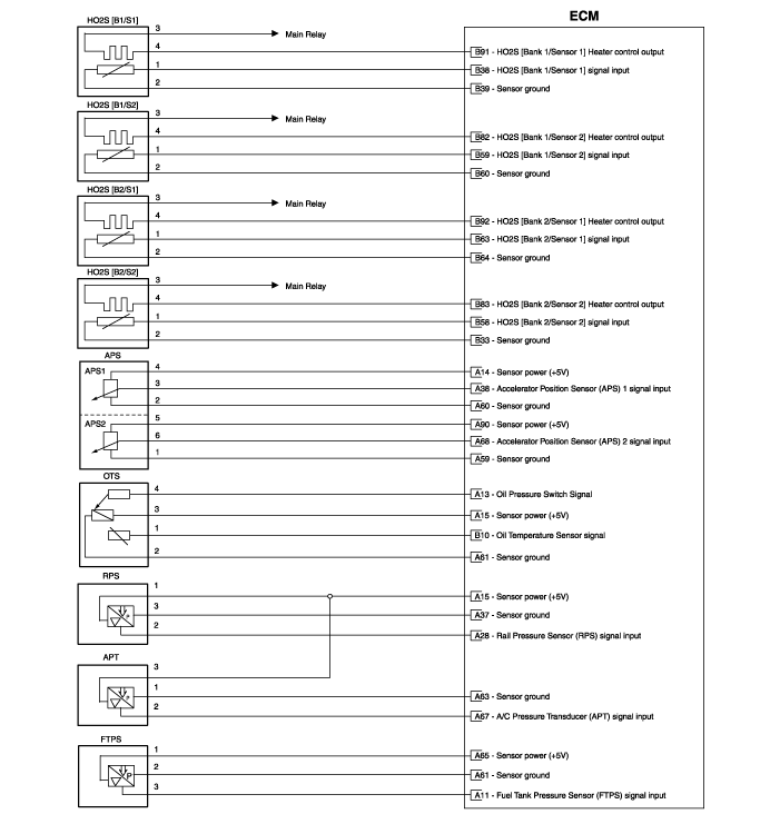 Hyundai Genesis: схематические схемы системы управления двигателем / модуля управления двигателем (ECM)