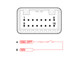 Проверьте целостность цепи между клеммами переключателя, когда переключатель ESC OFF включен.