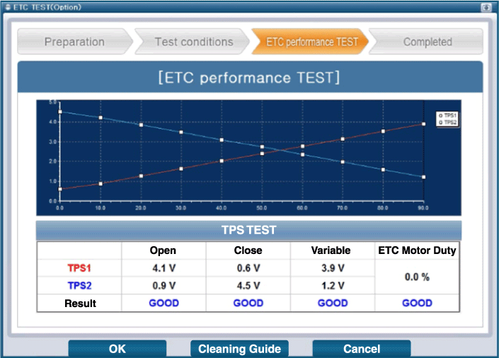 Если результат проверки модуля ETC или сигнала TPS показывает NG, выполните очистку модуля ETC.
