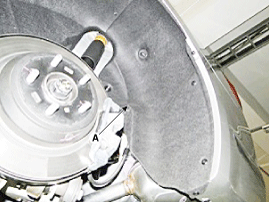 Снимите заднее левое колесо, шину и крышку колесной арки.