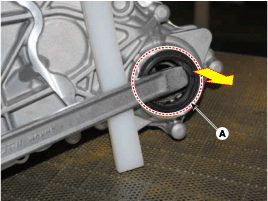 Вставьте новый фланец (А) в раздаточную коробку легкими ударами пластикового молотка.