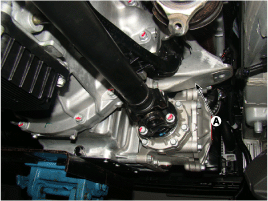 Установите задний дифференциал в сборе на автомобиль. Ослабьте заливную пробку (А) и залейте масло.