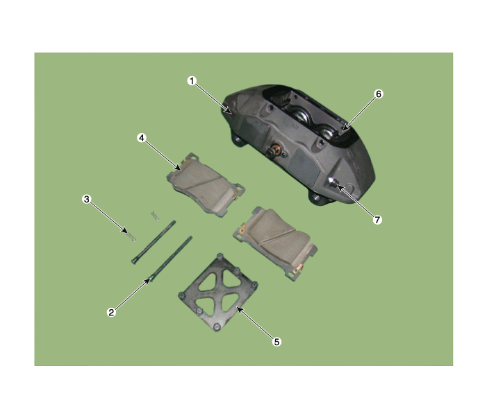 Hyundai Genesis: Тормозная система / Компоненты переднего дискового тормоза и их расположение