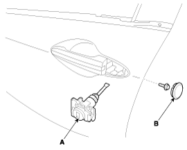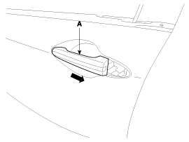 Снимите наружную ручку передней двери (А), сдвинув ее вперед.