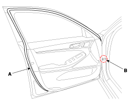 Отсоедините зажимы, затем снимите боковой уплотнитель передней двери (A).