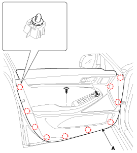 Ослабив крепежные винты, снимите нижнюю часть обшивки передней двери (А) с помощью плоской отвертки.