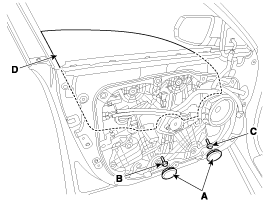 Ослабив крепежные винты, снимите ремень передней двери за пределами уплотнителя (А).