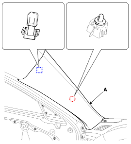 Слегка приподняв обшивку передней стойки и вставив инструмент, снимите крепежный зажим (А), потянув за него.