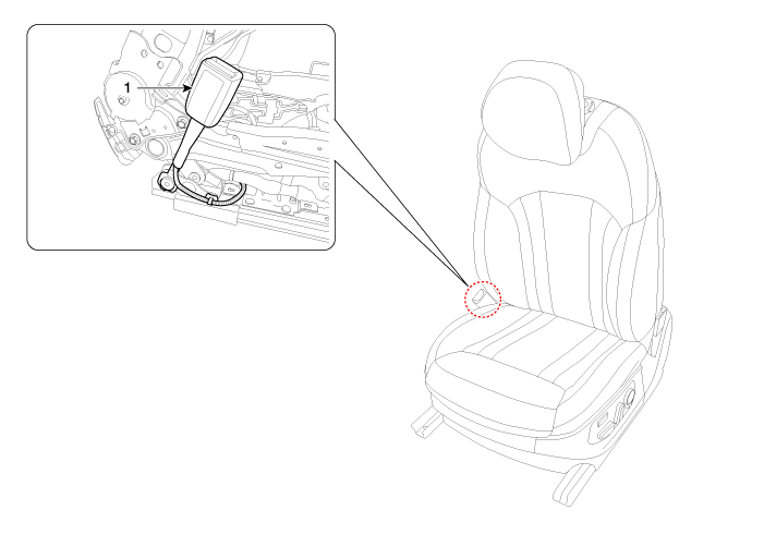 Hyundai Genesis (DH) 2013-2016 Руководство по ремонту / Кузов (внутри и снаружи) / Передний ремень безопасности / Компоненты пряжки переднего ремня безопасности и их расположение