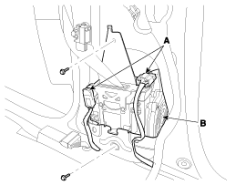 Ослабив крепежные болты, снимите центральный кронштейн переднего ремня безопасности (А).