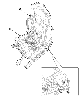 задний каркас в сборе (A) от каркаса подушки переднего сиденья в сборе (B).