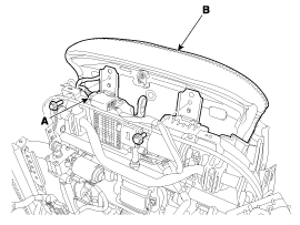 Ослабив крепежные болты, снимите модули удлинителя подушки переднего сиденья (В).