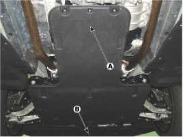 Ослабьте гайку (А) и отсоедините стойку стабилизатора от передней стойки в сборе.