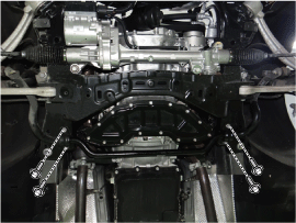 Ослабьте болты крепления хомута и отделите стабилизатор поперечной устойчивости от подрамника.