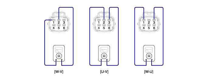 С помощью омметра измерьте сопротивление между клеммами U-V, V-W, W-U.
