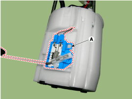 Снимите датчик уровня топлива (А), отпустив фиксирующий крюк.