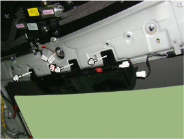 Отсоедините отрицательную (-) клемму аккумуляторной батареи.