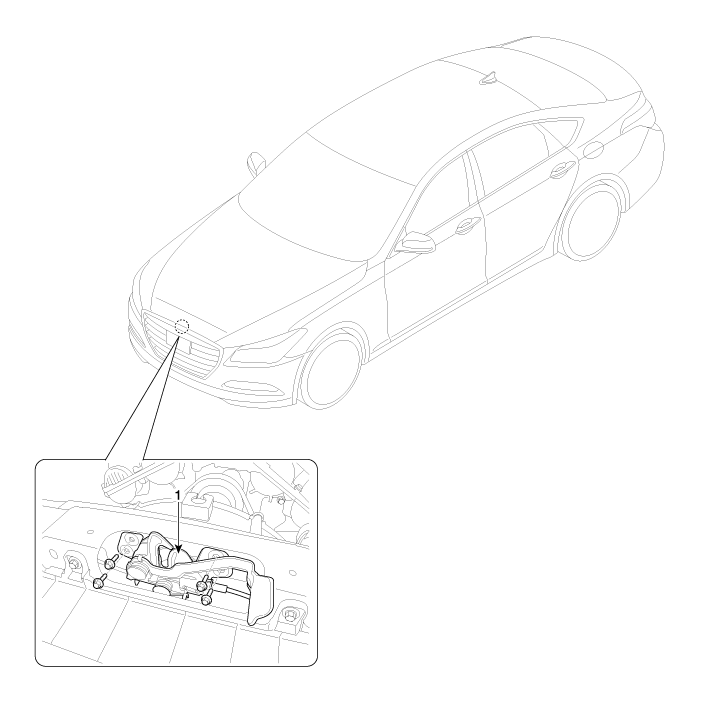 Hyundai Genesis (DH) 2013-2016 Руководство по ремонту / Кузов (внутри и снаружи) / Капюшон / Компоненты замка капота и расположение компонентов