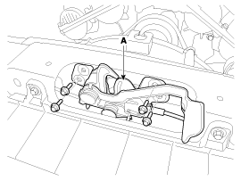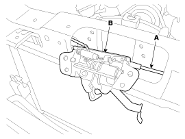 Отсоедините разъем (А), затем снимите фиксатор проводки.