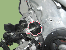 Снимите натяжитель приводного ремня (А).