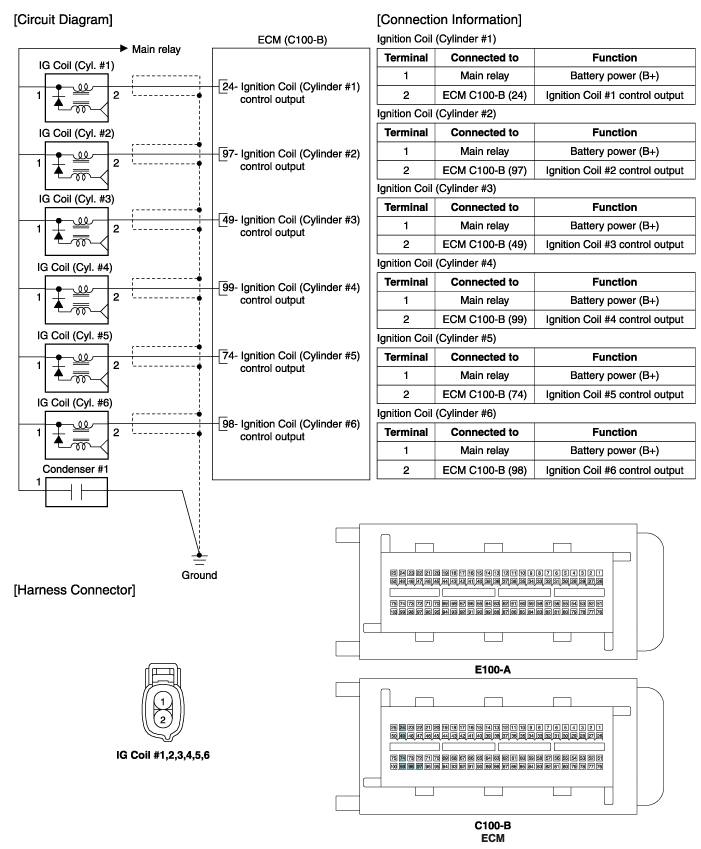 Hyundai Genesis: схематические схемы системы зажигания / катушки зажигания