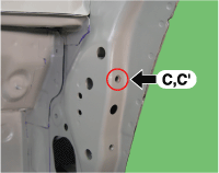 Отверстие для крепления обшивки задней стойки (O8.4)