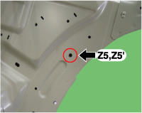 Инструментальное отверстие внутренней панели задней колесной арки (O12)