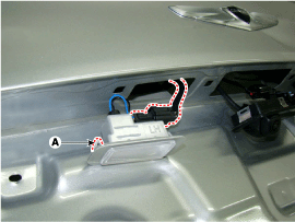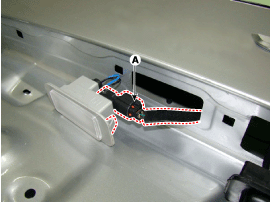 Снимите блок лампы номерного знака после отсоединения разъема номерного знака (A).
