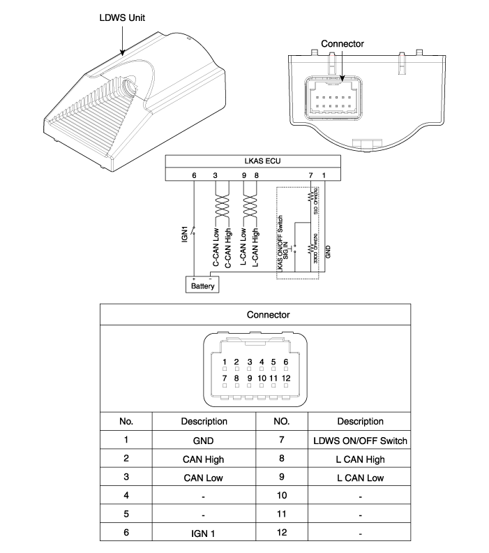 Hyundai Genesis: LKAS (Система помощи при удержании полосы движения) / Компоненты блока LKAS и расположение компонентов