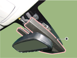 Снимите крышку проводки зеркала (А) и крышку датчика дождя (В).