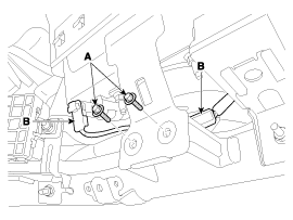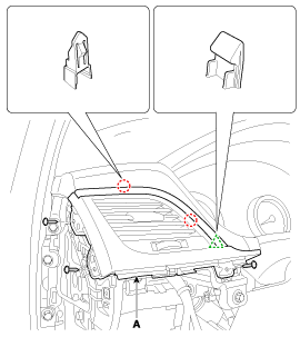 Ослабив крепежные винты, снимите боковую декоративную накладку в сборе [LH] (A).