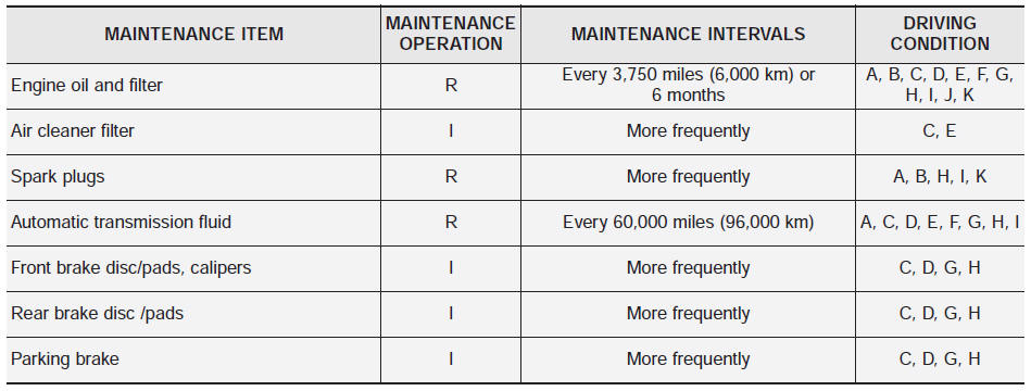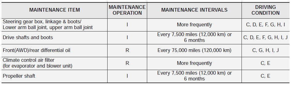 Hyundai Genesis: Плановое техническое обслуживание / Техническое обслуживание в тяжелых условиях эксплуатации