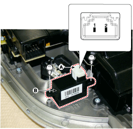 Снимите микрофон громкой связи (B) после ослабления винтов и разъема (A).