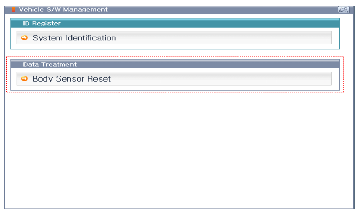 Включить зажигание и выключить двигатель, выбрать систему подушек безопасности и режим «Сброс датчика кузова».