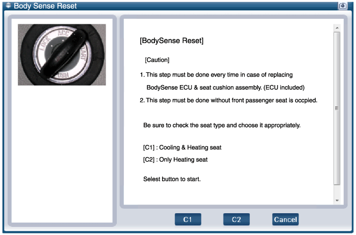 Обязательно выполните обнуление OCS с помощью GDS после замены подушки сиденья с OCS.