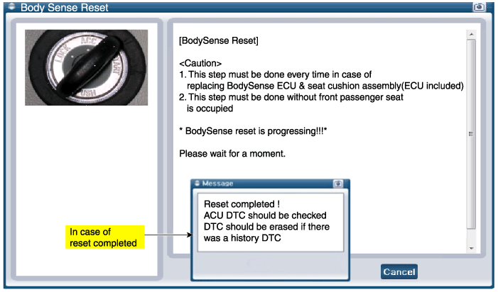 Вы должны выполнить процедуру сброса OCS после обслуживания или замена почти всей части пассажирского сиденья. (Не включены полные сиденье в сборе)