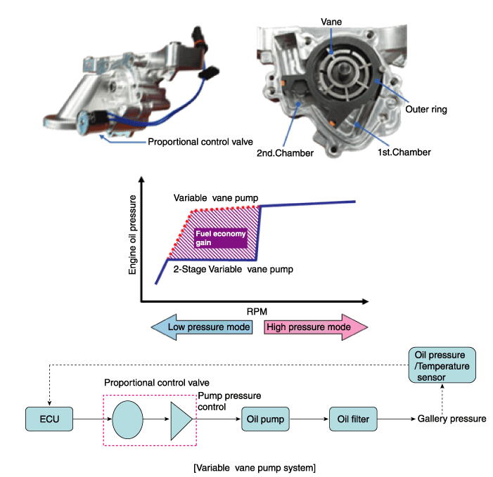 2-ступенчатый регулируемый лопастной насос улучшает экономию топлива за счет