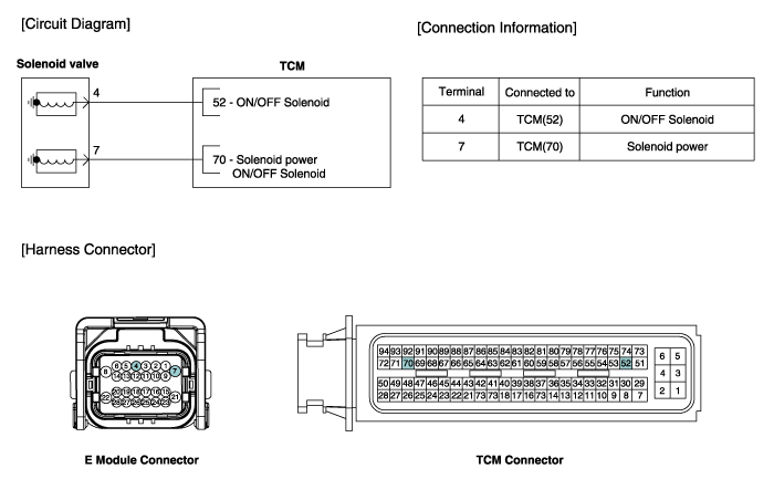 Hyundai Genesis: схематические схемы системы управления автоматической коробкой передач / электромагнитного клапана ВКЛ/ВЫКЛ