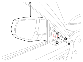Ослабив крепежные болты, снимите наружное зеркало заднего вида (В).