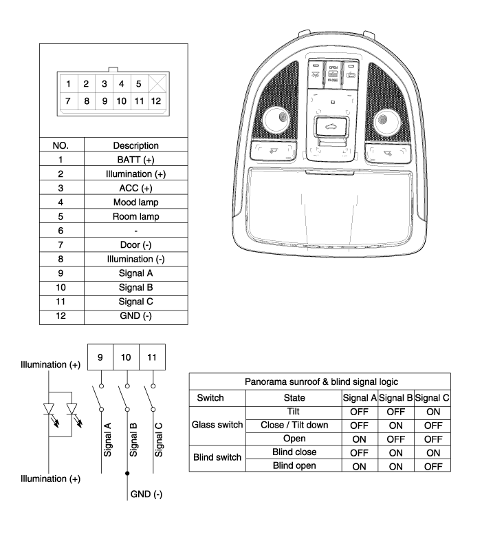 Hyundai Genesis: Панорамный люк на крыше / Переключатель панорамного люка на крыше Компоненты и расположение компонентов