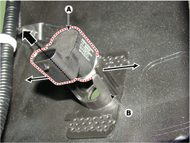 Снимите задний датчик (А), потянув за оба конца держателя датчика (В).